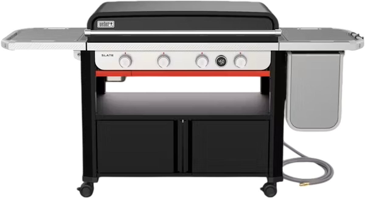 Step up to the ultimate flat-top grilling experience with the sleek and stylish 36” Slate® Rust-Resistant Griddle. This model is loaded with premium features, including a digital temperature display, an extendable side table (right) to expand your prep area, a fold-down side table (left) to free up space, and closed cabinet storage for tools and gear.Read More